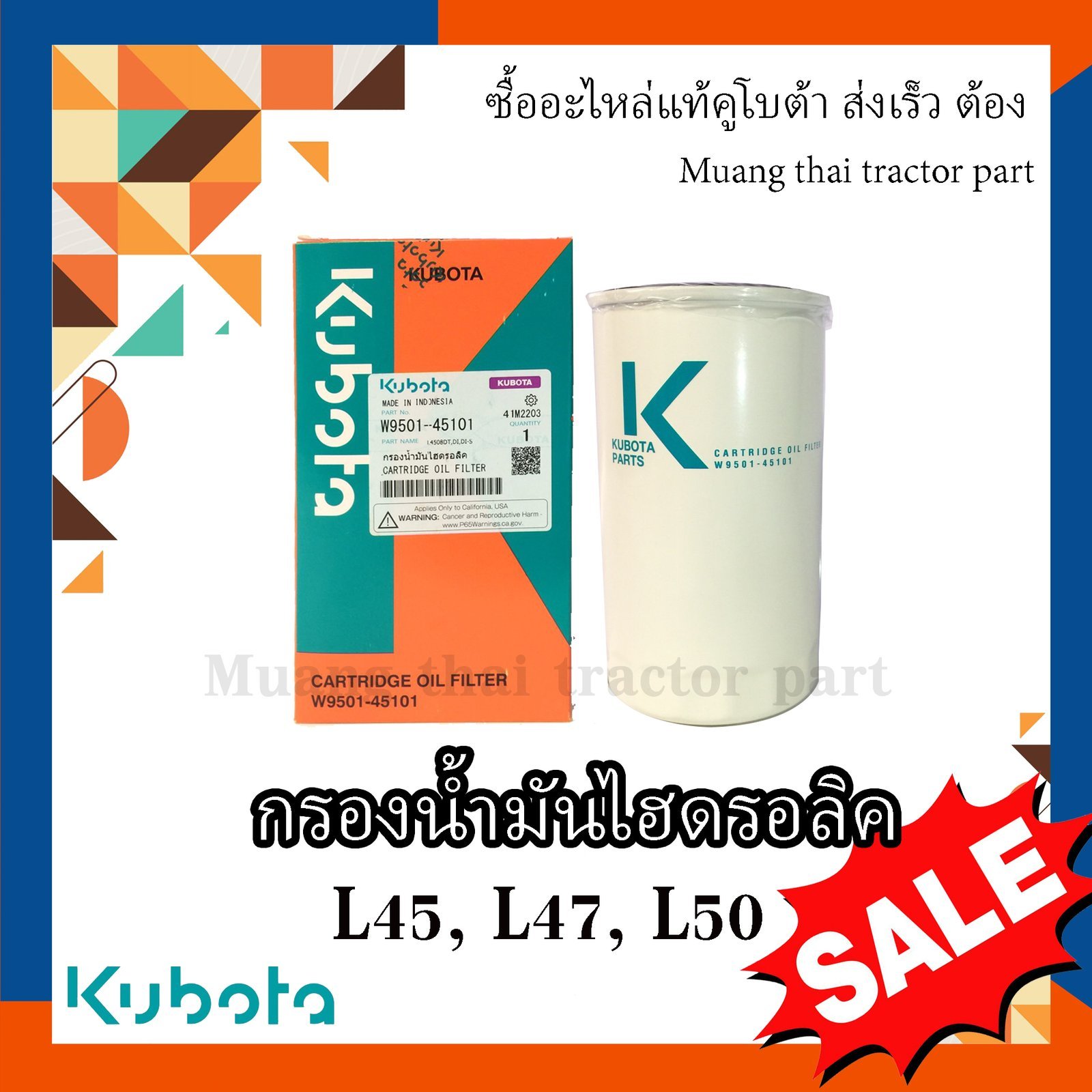 กรองน้ำมันไฮดรอลิค รถแทรกเตอร์คูโบต้า รุ่น L4508, L4708, L5018 , W9501-45101