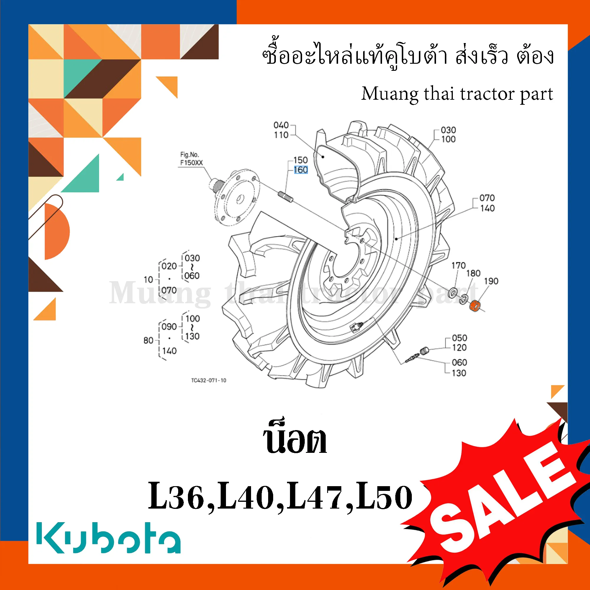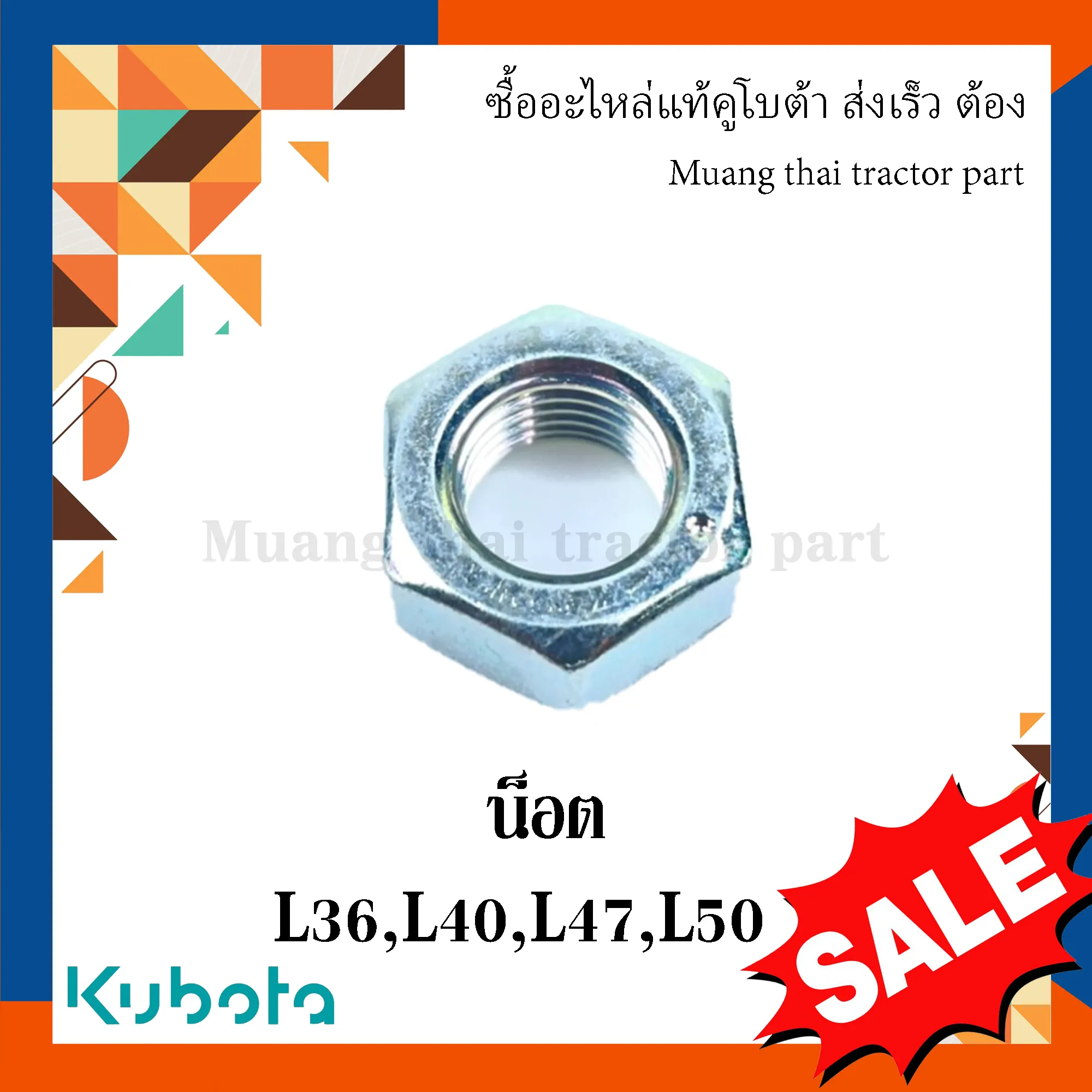 ✅ น็อตขันสตัดล้อหน้าแท้จาก KUBOTA สำหรับใช้งานกับล้อหน้าโดยตรง