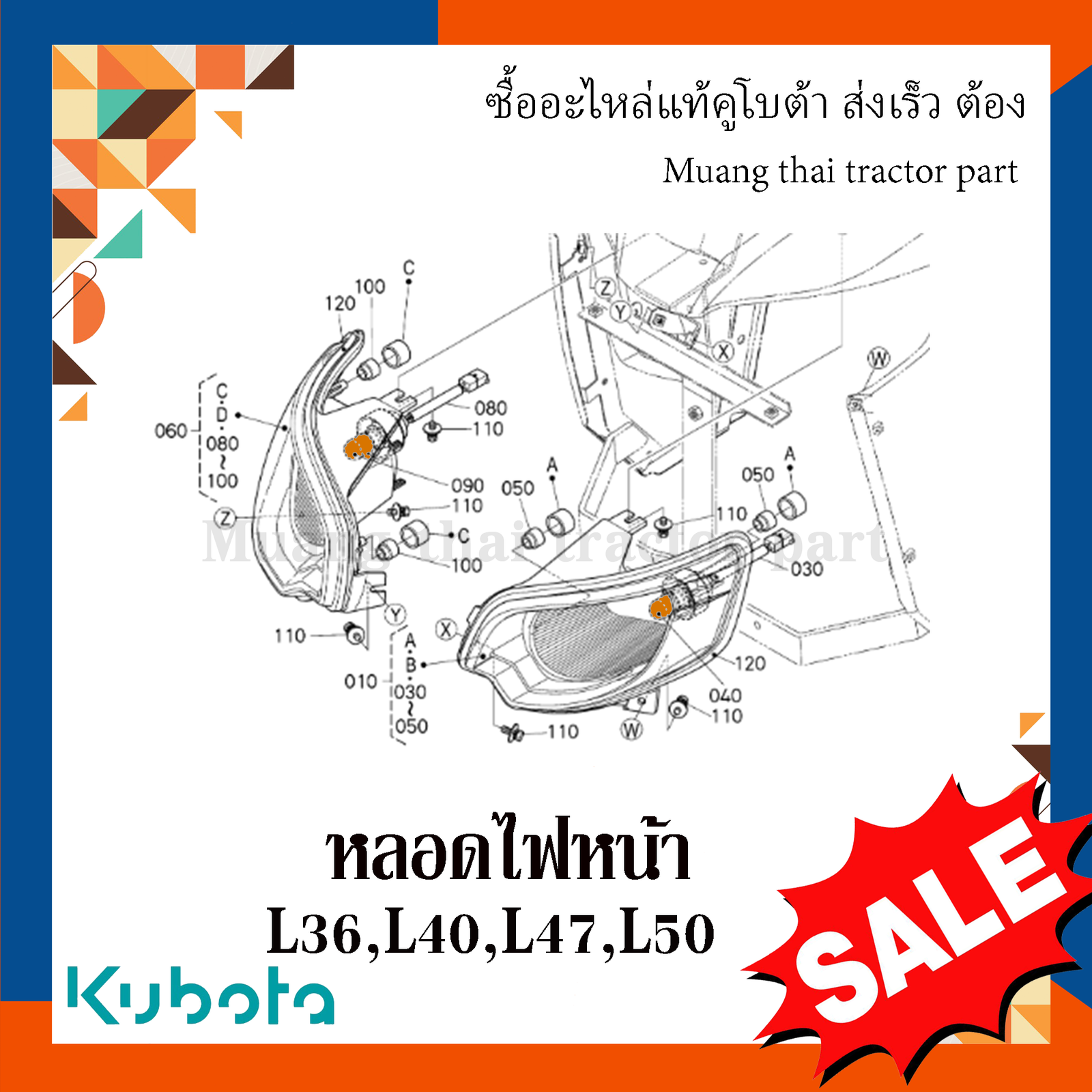 หลอดไฟหน้า 25w Kubota Tractor รุ่น L3608SP, L4018SP, L4508DT, L4708DT, L5018SP W9501-36000